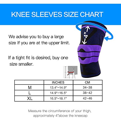 -. Feature : PERFECT DESIGN &TARGETED RELIEF: An anatomically contoured silicone pad surrounds the kneecap. This special functional element disperses pressure. When the knee moves, the pad and the knitted fabric massage the connective tissue and the muscles. Two pressure points and lateral wings deliver targeted stimuli. This stimulation triggers positive sensory motor feedback. The stabilizing muscles are activated to improve joint stability. This stabilizing effect reduces stress and risk of injury. / PREMIUM QUALITY:Our Knee Compression Sleeve using high-quality materials and breathable compression fabric, with a soft and smooth feeling, makes you more comfortable when wearing, and provides a breathability and heat preservation effect in knee movement. It can absorb sweat fast and keeps your knee dry and odor free, which gives you comfort in continuous use. / COMFORT WRAP SUPPORT AND PAIN RELIEF Makes it Ideal For Every Day Use for Meniscus Tears, ACL, PCL, MCL Injuries, Swelling, Arthritis, Bursitis, Tendonitis and Post Surgery Protection. Also Prevents Injuries and Reduces Inflammation. Get Back to Enjoying Your Activities. / BREATHABLE KNITTED SOFT FABRIC WITH NON SLIP SILICONE STRIPS For Crossfit, Tennis, Cycling Volleyball, Jogging, Powerlifting, Skateboarding, Triathlon, Walking, Hiking, Wrestling, Skiing, Golf, Soccer, Zumba, Climbing, Gymnastics, Weightlifting, Yoga, Squats, Baseball, Football, Bodybuilding, Martial Arts, Runners, Dance, Gym Workouts, Exercising and Other Fitness Sports. / SATISFACTION GUARANTEED:100%money back. Your satisfaction is our preference; because we think you should try us out without any risk. If MetCalo doesn't meet all of your needs, we'll repay you the full purchase P.R.Ice. Note check Size Chart before ordering to choose Best Size Knee Brace.