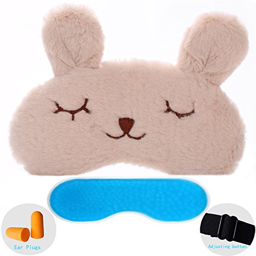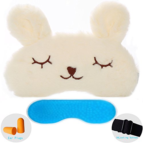 ZHICHEN Silk Eye Mask with Lovely 3D Cute Rabbit Face Soft Eye Bags Adjustable Sleeping Blindfo...