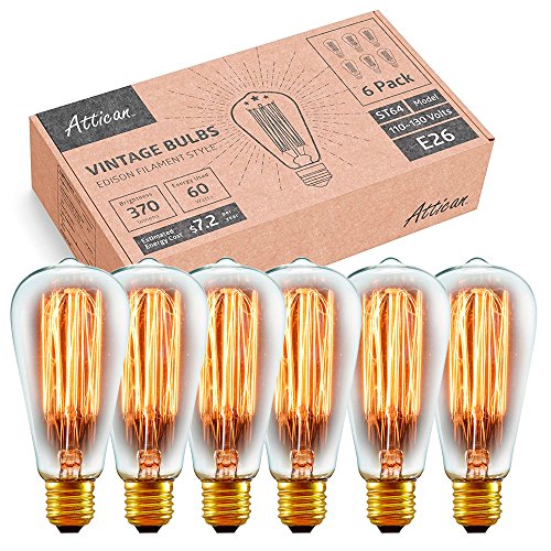 Attican 6-Pack Edison Light Bulb, Antique Vintage Style, Dimmable (60w/110v)