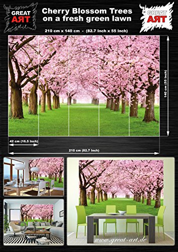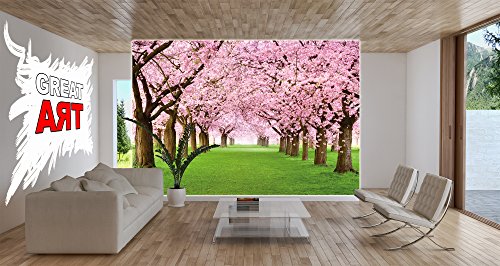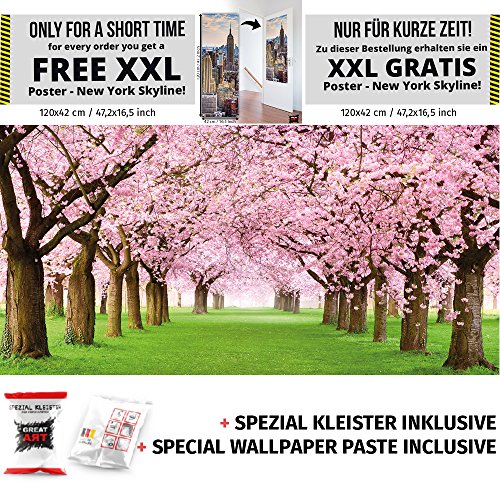 -. Brand : Great Art -. Feature : Only for a short amount of time! Get a New York Skyline poster (48 Inch x 17 Inch) with this order for free! / Controlled manufacture by great-art®, designer wallpapers made in Germany. Securely shipped with sturdy packaging - worldwide shipping. / Latest P.R.Inting technique, varnishing the surface: The P.R.Int is of a unique, high quality and rich in detail. Very sturdy P.R.Int can be used everywhere due to thicker paper. It can be wallpapered on every base. / Can be wallpapered over existing wallpaper. Picture consists of 1 part, sealed and varnished. Contains instructions - great for every occasion! / Can be used as poster or photo wallpaper! It is very easy to mount with tape or with thumbtacks as a poster. -. Label : GREAT ART -. Manufacturer : GREAT ART -. ProductGroup : Furniture -. ProductTypeName : HOME_FURNITURE_AND_DECOR -. Publisher : GREAT ART -. Studio : GREAT ART -. Title : Cherry Tree Photo Wallpaper - Forest with Cherry Trees - SP.R.Ing Pink Wallpaper Mural - Trees Forest Wall Decoration By Great Art