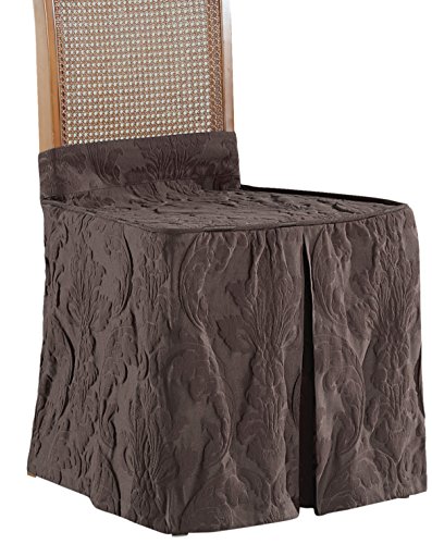 -. Title : Sure Fit Matelasse Damask  - Dining Room Chair Skirt Slipcover  - Espresso (SF42926)