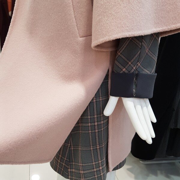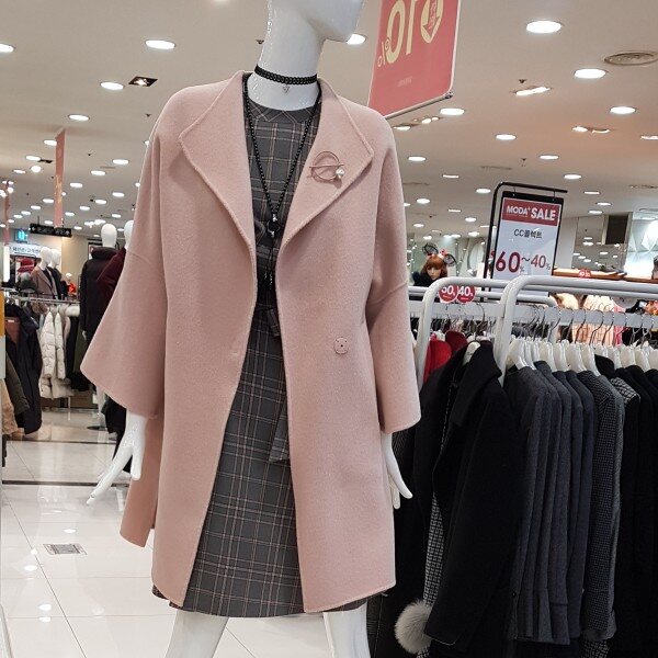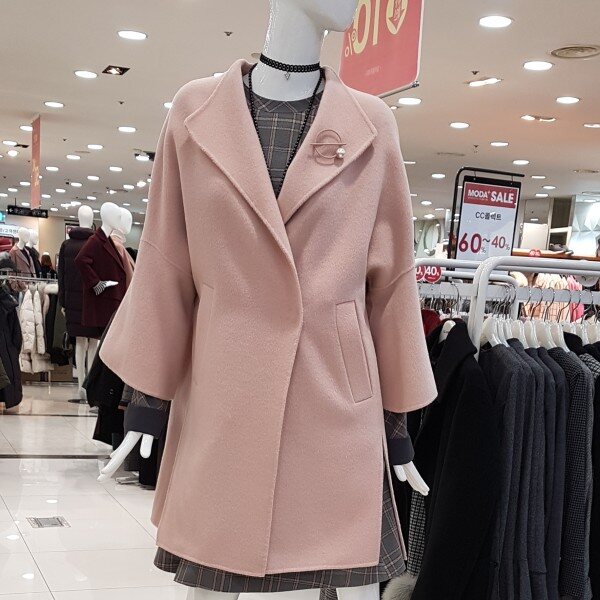 모직에 가벼운 핸드메이드코트네용 루즈하게 떨어지는 어깨선에 편하구요넓게 퍼지는 A라인소매는 여성스러워요흘러내리는 어깨선과 퍼지는 카라는 넓은어깨고객님 좁은어깨고객님 ㅎㅎ모두 만족하시는 디쟌이랍니당