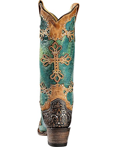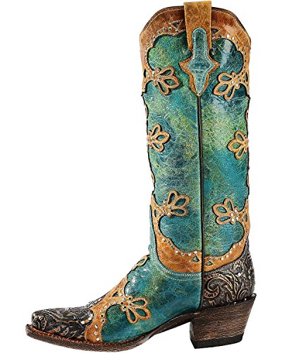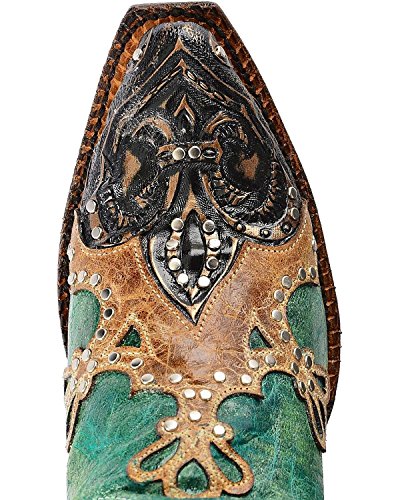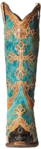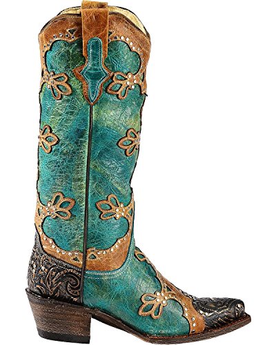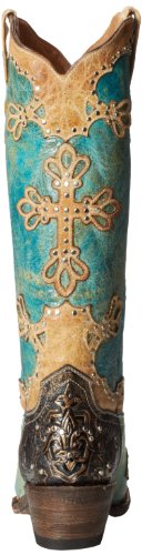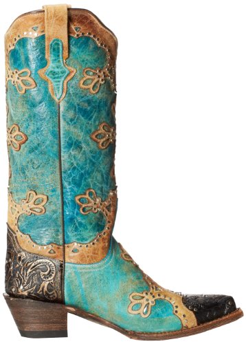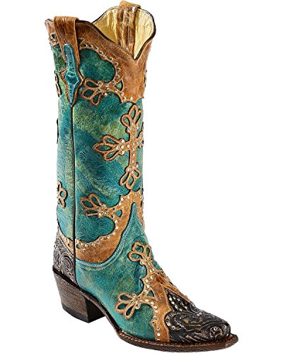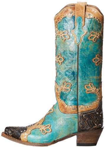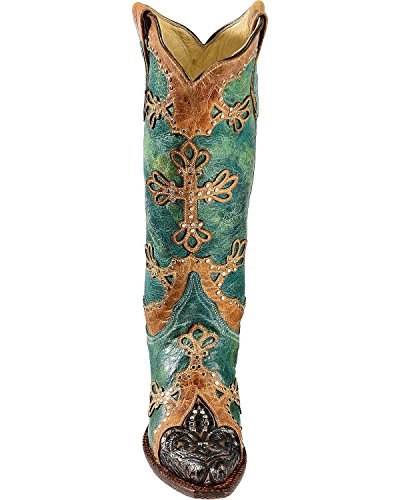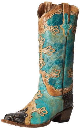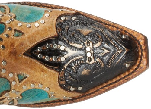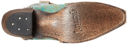 Studio : Ferrini Publisher : Ferrini Binding : Apparel Product Description Ferrini boots are handcrafted with superb attention to detail These Ferrini cowgirl boots feature a distressed turquoise leather foot with studded wingtip overlay under a 13" leather shaft with studded overlays. Leather lining. 2" undershot walking heel. Single stitched welt. Easy-on pull straps and updated snip toe profile. Imported. 0