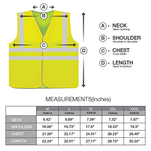 Neiko 53965A High Visibility Safety Vest with 2 Pockets, ANSI / ISEA Standard | Color Neon Yellow | Size XXXL