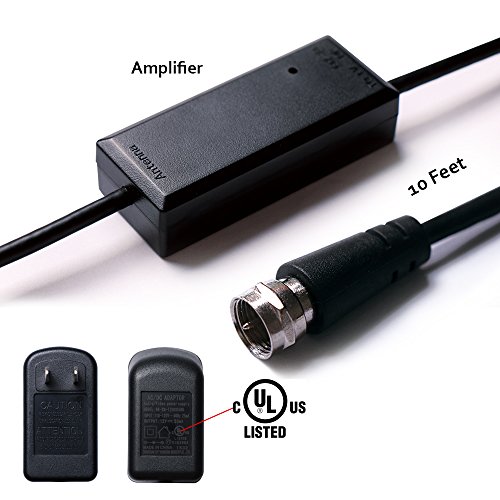 - HIGH PERFORMANCE -- 10FT long Coaxial cable makes it easy to place the antenna in the best reception spot in your house, use the amplifier signal booster for the antenna’s full 50 mile range, or remove it for better if you live nearer to the TV broadcast tower.