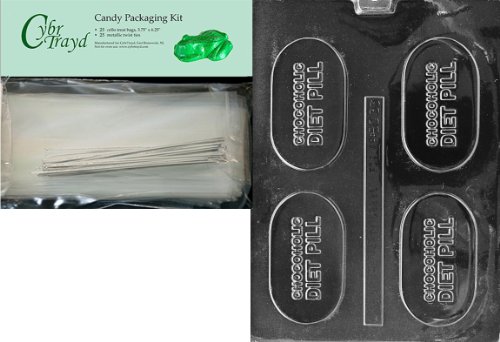 Cybrtrayd "Diet Pill" Business Card Chocolate Candy Mold with Packaging Bundle of 25 Cello Bags, 25 Silver Twist Ties and Chocolate Molding Instructions