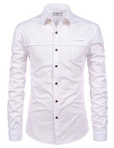 -. Title : NEARKIN Mens Spread Collar Pocket Patch Stretchy Long Sleeve Dress Shirts