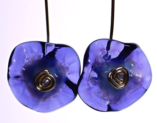 -. Title : Hand Blown Glass Flower Earrings With Sterling Silver Accents