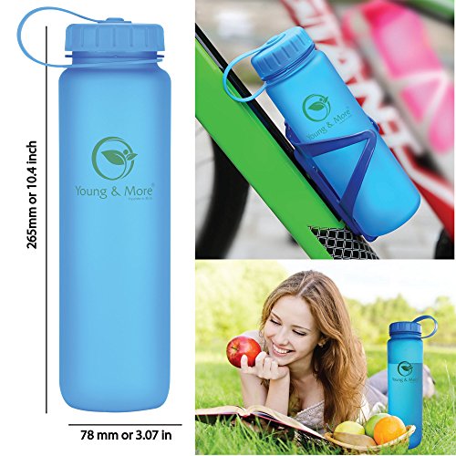 Each 32 oz Young & More water bottle features an easy-access, screw off top that improves drink flow for optimal hydration and enjoyment. The bottle will survive most weather conditions. Take it to your next camping or hiking trips - Easy to Fill and Clean - Leak-proof, spill-proof, tough and durable - Wide mouth and large capacity features