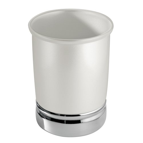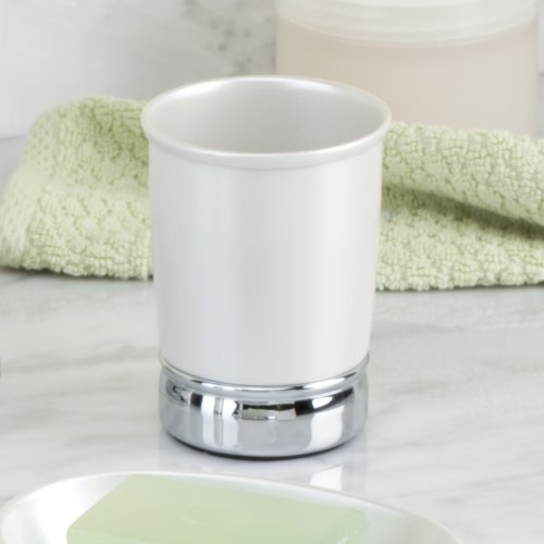 InterDesign York Tumbler Cup for Bathroom Vanity Countertops, Brushed Stainless Steel/Pearl White/Chrome