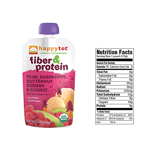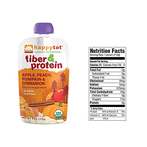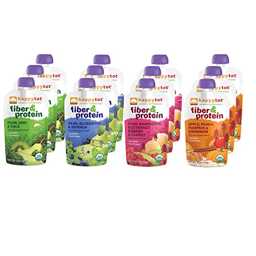 Happy Tot Organic Superfoods Fiber & Protein Stage 4 Baby Food Variety Pack, 4 Flavors (Pack of 12)