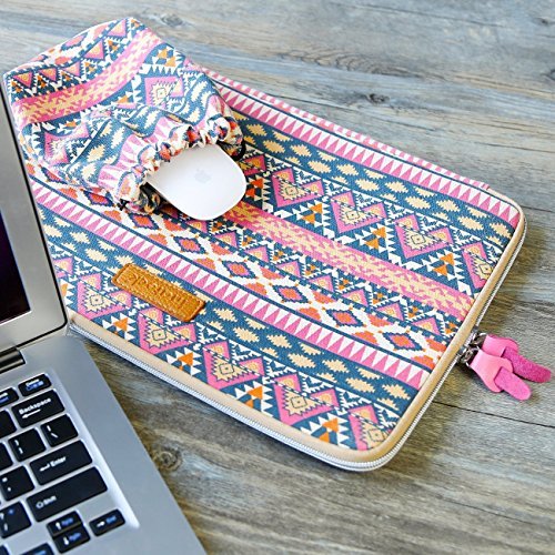 Inateck 13.3 Inch Bohemian Macbook Air/ MacBook Pro Retina Ultrabook Netbook Envelope Cover Sleeve Carrying Protector Case Bag with a Bonus Mouse Bag, Opera Pink [Size: 13.3-Inch, Canvas Fabric]