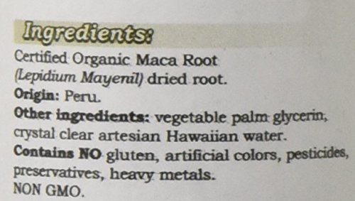 We strictly use Only Certified Organic or ethically sourced wild harvested raw material, vegetable palm glycerin and crystal clear artesian purified water! Really the BEST Maca Root herbal glycerite on market! Made with love for plants and respect for Nature!