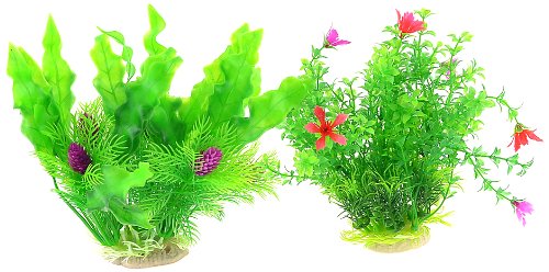 Uxcell 2-Piece Plastic Aquarium Landscape Emulational Aquatic Water Plant, Green