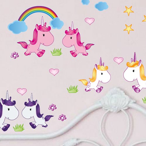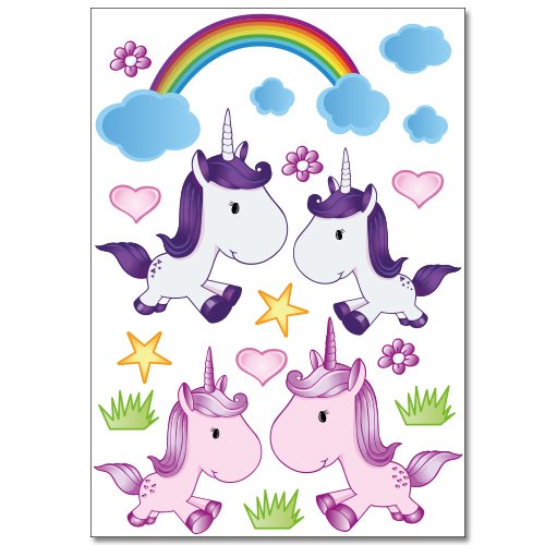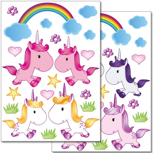 Wandkings wall stickers Cute Unicorns Sticker Set – 38 stickers on 2 US letter sheets (each 8.3 x 11.7 inch)