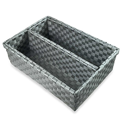 -. Binding : Kitchen -. Brand : Generic -. Color : Grey -. EAN : 0745577784105 -. Feature : This 3-Piece woven nylon drawer organizer set is perfect for creating neat sections of various-sized items, from socks and lingerie to ties and jewelry / Can be used together or individually. Set includes 1 large and 2 small organizers / Large organizer measures 13" L x 9" W x 4-1/2" H. Small organizers measure 12.6" L x 4-1/4" W x 4" H each / Wire construction. Metal interior construction / Plastic finish. Imported -. IsAutographed : 0 -. Label : Generic -. Manufacturer : Generic -. Model : 1042531043 -. MPN : 1042531043 -. PackageQuantity : 1 -. PartNumber : 1042531043 -. ProductGroup : Home -. ProductTypeName : HOME -. Publisher : Generic -. Size : Small, Large -. Studio : Generic -. Title : Woven Nylon 3-Piece Wide Drawer Organizers in Grey -. UPC : 650327897373