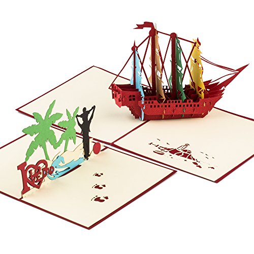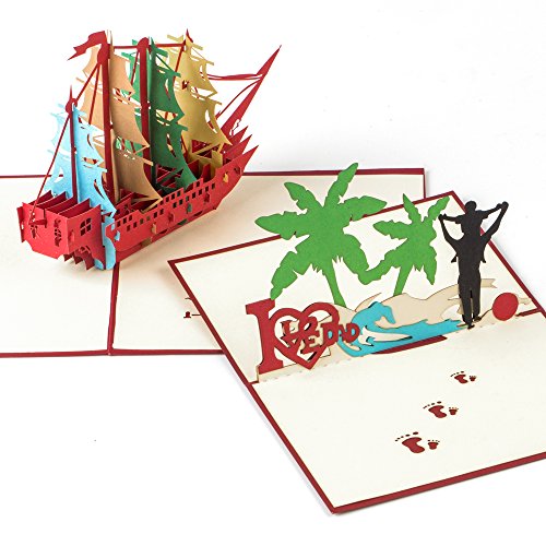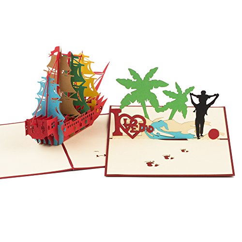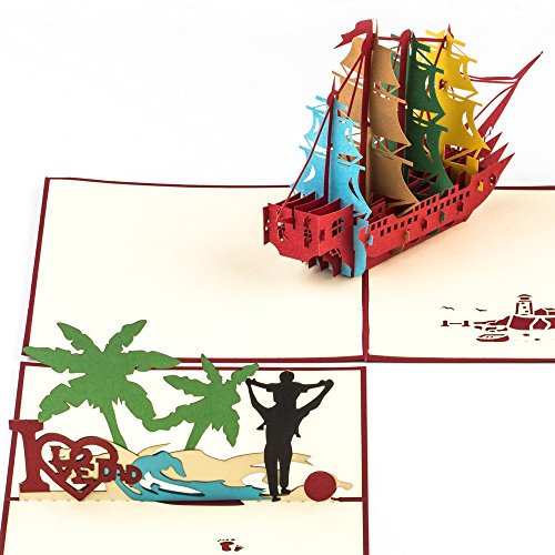 Ulgoo Fathers Card 3D Pop up Postcard Greeting Cards for Father’s Day Father Birthday (Dad and Boat)