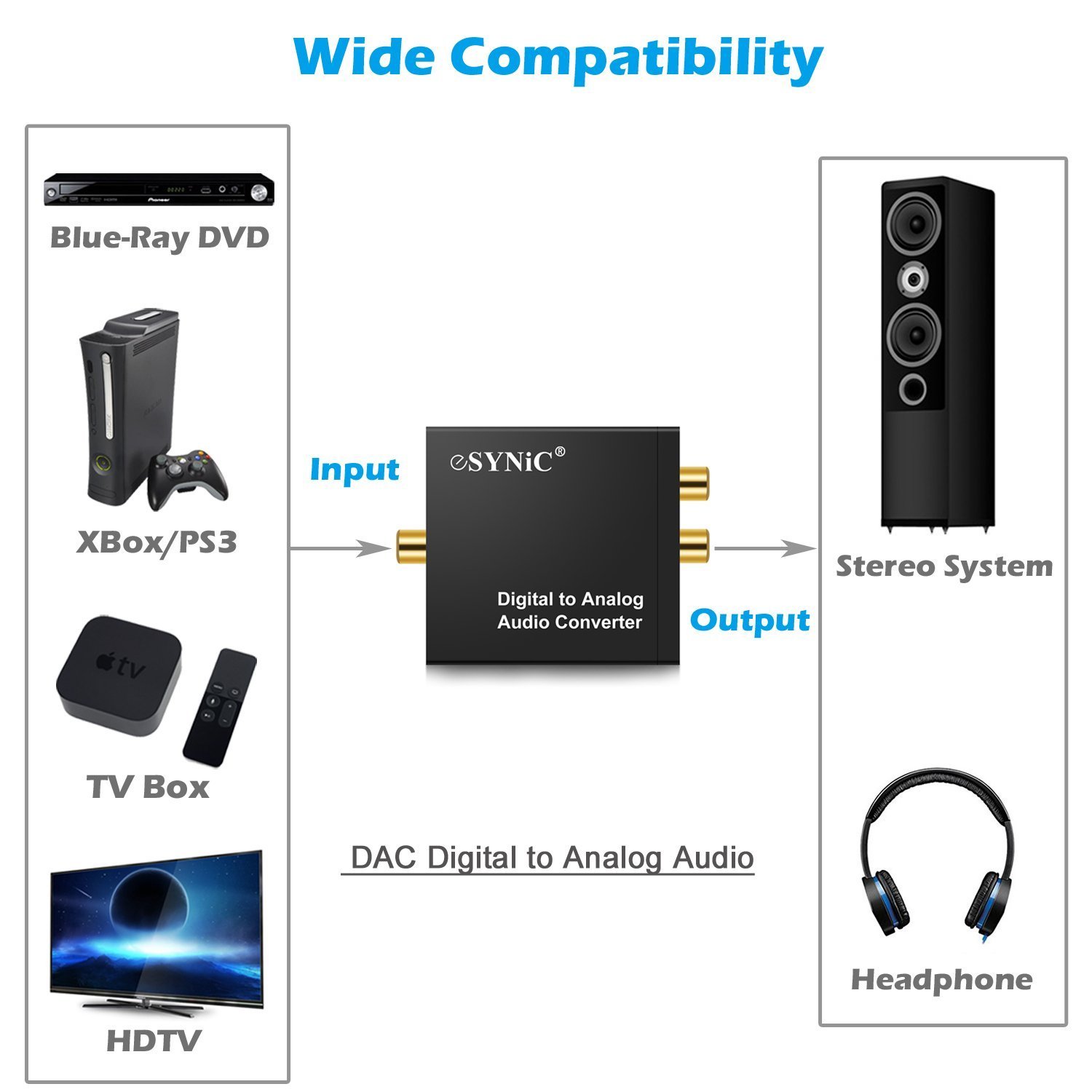 It corresponds to equipment with digital output terminal such as HDTV, PC, PS3, PS4, XBOX 360, DVD, Blue-ray player, Apple TV etc.