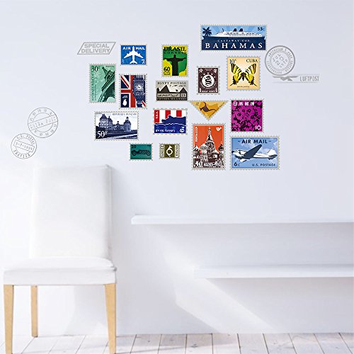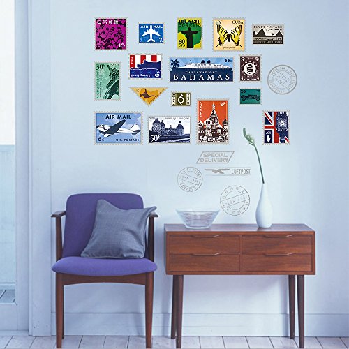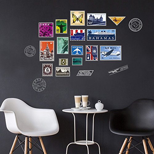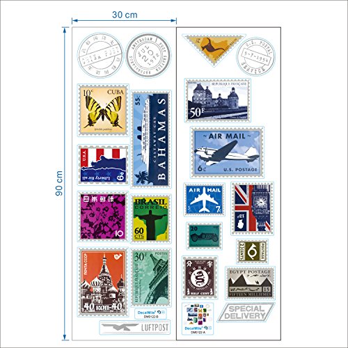 DecalMile Stamp Eiffel Tower Big Ben Wall Stickers Removable DIY Wall Decals Murals For Living Room Travel Agency