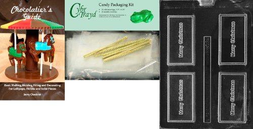 Cybrtrayd Merry Christmas Business Card Chocolate Candy Mold with Chocolatier's Bundle, Includes 25 Cello Bags and 25 Gold Twist Ties
