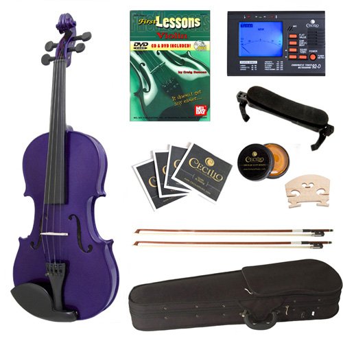 -. Feature : Size 4/4 (full size) beautiful purple varnish violin / Hand-carved solid spruce top with maple back & sides / Ebony fingerboard, pegs and chinrest, with an alloy tailpiece with 4 built-in fine tuners / Includes: Cecilio chromatic tuner, lesson book, lightweight hard case, 2 x Brazilwood bows with unbleached genuine Mongolian horsehair, quality rosin cake, adjustable shoulder rest, and an extra bridge / 1 Year Warranty Against Manufacturer's Defects