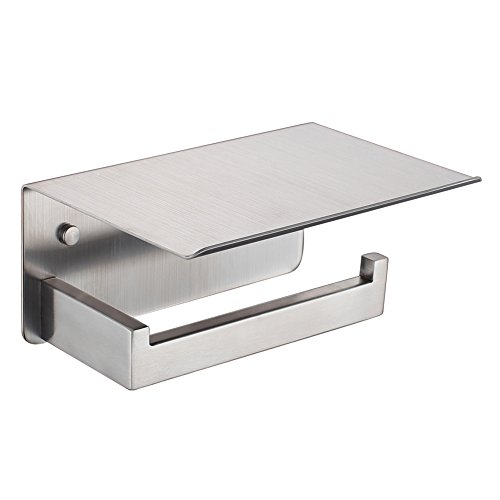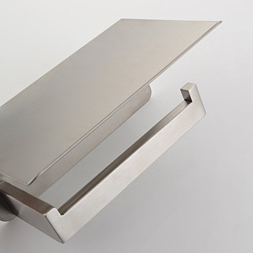 - 【HUMANIZED DESIGN】a. Upward bend edge design prevents phone/things from slipping off. b. Upward curved hook without tissue coming off easily. c. Deburred all around to a smooth edge and tooled excellent. d. Simple & thoughtfully assembled, different installation holes make it very easy for final level adjustment before screws are fully tightened.