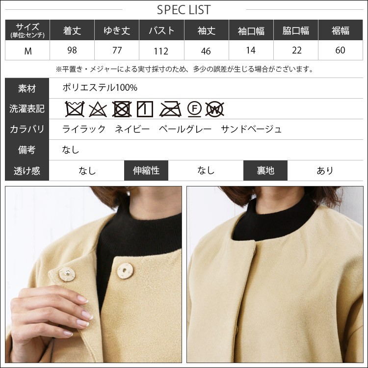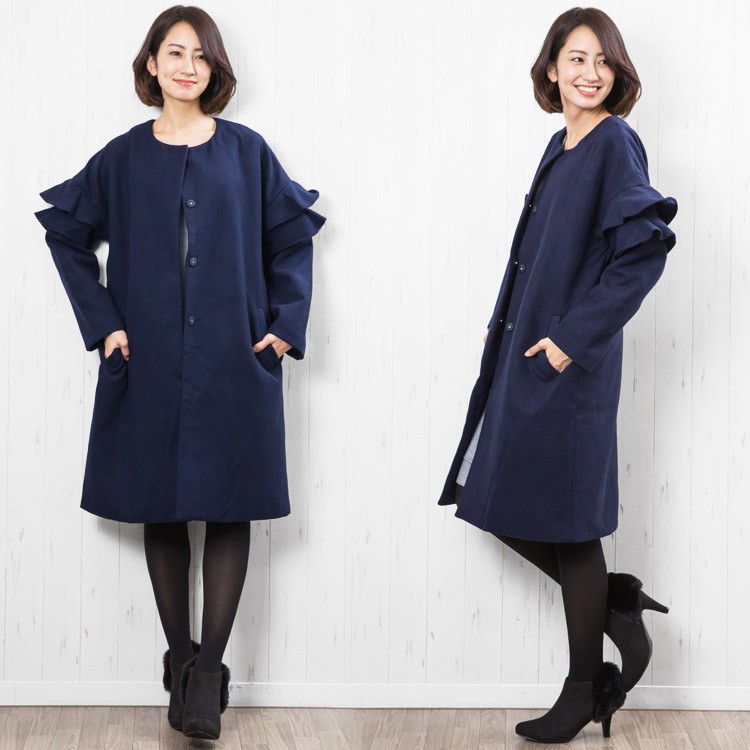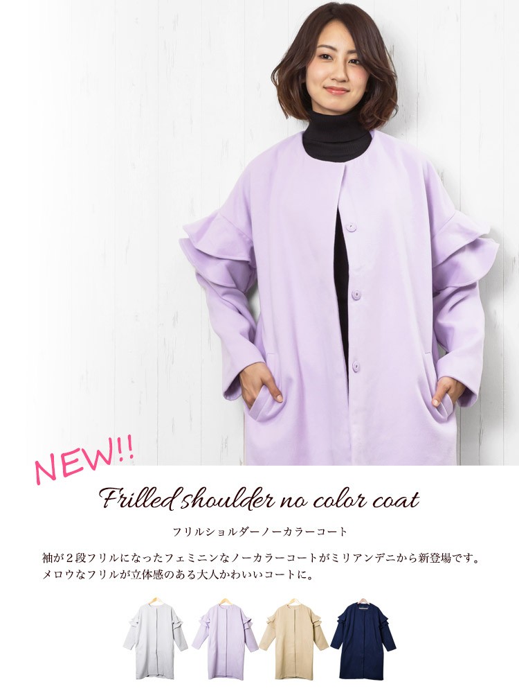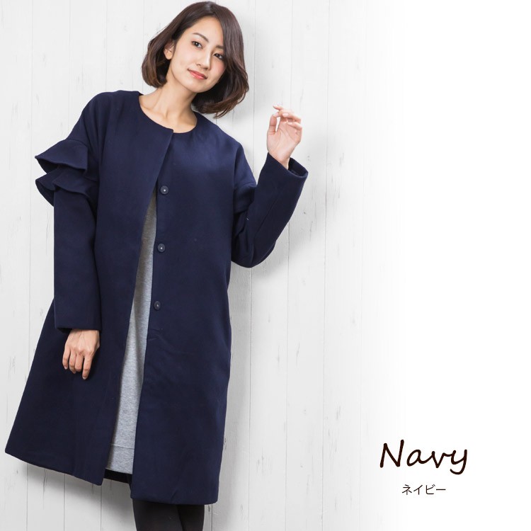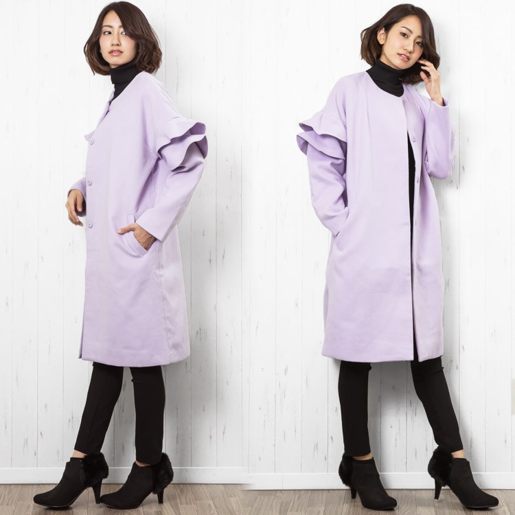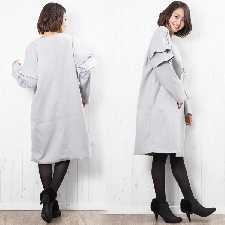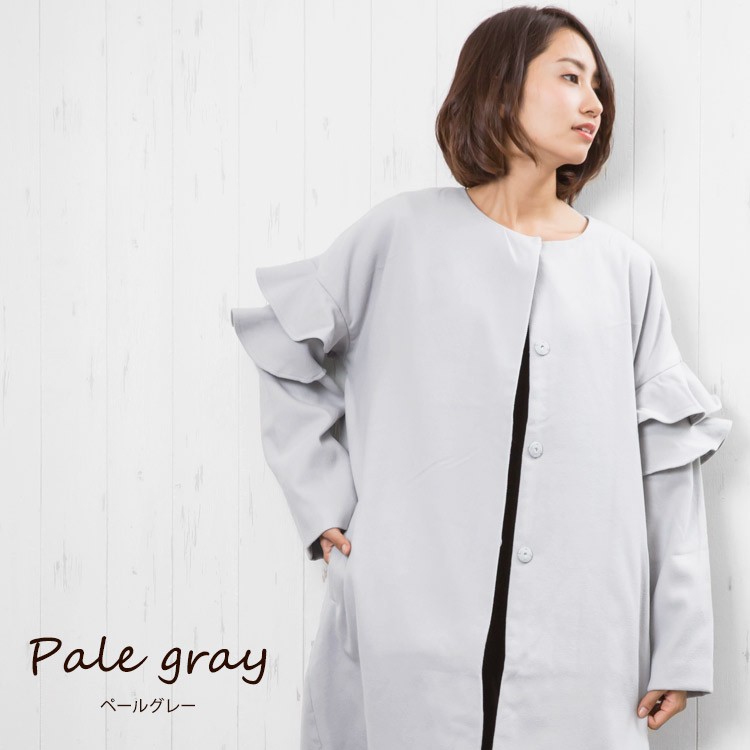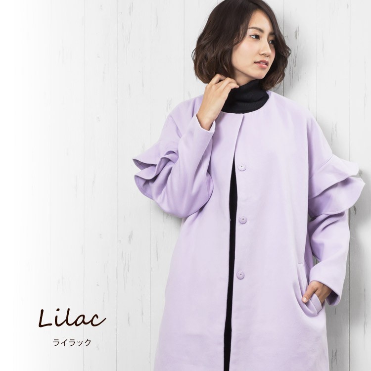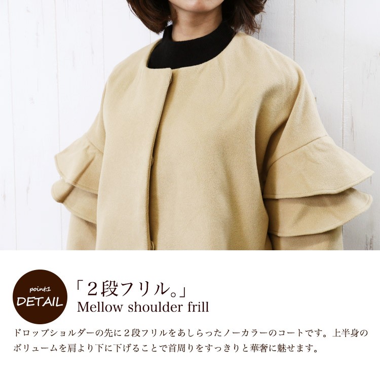 商品名:フリルショルダーノーカラーコート