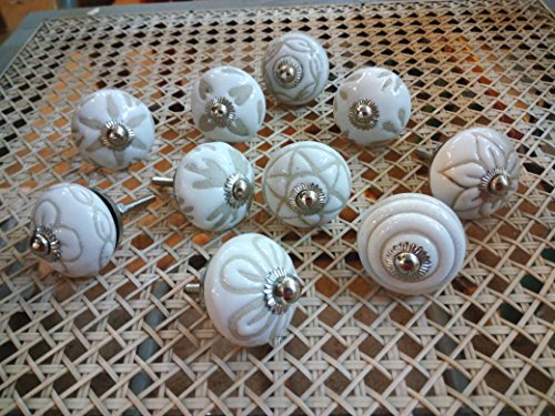 -. Brand : JGARTS -. Feature : CERAMIC HAND PAINTED SET OF 20 GREY AND WHITE CERAMIC KNOBS / Diameter Of each Knobs- Standard 1.75(inch) approx. / Materials - Ceramic , Hand Painted / Set of 20 Pieces GREY AND WHITE Color Multi Designed Ceramic Cupboard Cabinet Door Knobs Drawer Pulls & Chrome Hardware / 陶瓷手绘20件套灰色和白色陶瓷旋钮 / 每个直径 knobs- 标准款101.6 cm ) 约 / 材料 - 陶瓷,手绘 / 20件套灰色和白色颜色多种颜色设计陶瓷碗柜等橱柜门把手抽屉拉手和铬硬件 / Juego de 10 pomos de clóset de cerámica color azul y blanco con cromo de hardware / Dimensiones: Diámetro 1.5 inch & 1.5 inch Altura. / Hermoso diseño Quirky elegancia y pintada a mano. / Todo el hardware necesario para la instalación incluido -. ProductGroup : Home Improvement -. ProductTypeName : HARDWARE -. Title : JGARTS 20 Knobs Hand Painted Ceramic Knobs Cabinet Drawer Pull Pulls