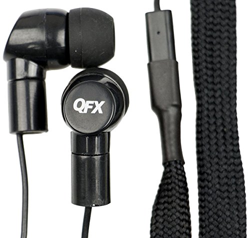 QFX H-108BLK/BK Shoelace Earphones with In-Line Microphone, Black