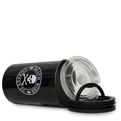 Our Death Wish Coffee Vacuum Sealed Canister is a must have for coffee lovers. This 16 ounce container holds up to a pound of coffee and is guaranteed to keep your coffee amazingly fresh. Don't drink stale coffee when you can drink great coffee everyday.