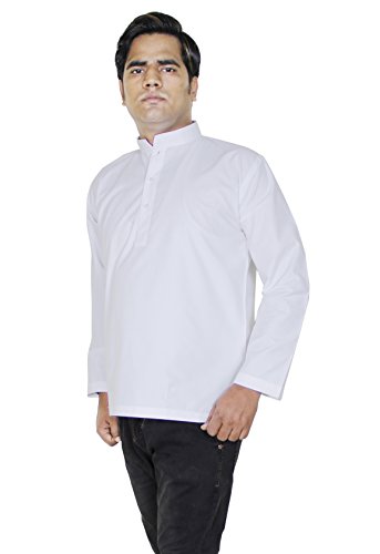 -. Feature : BEAUTIFUL HANDLOOM woven 100% cotton shirt kurta for men / AIRY, LIGHT TOP Available size chest M(40 Inch), L(42 Inch), XL(44 Inch) ; Loose sleeves; Vented sides / BREATHABLE & SOFT Lightweight design; this shirt kurta is perfect for even the hottest of days! / TRADITIONAL DESIGN Embroidered thigh length Short Kurta; handmade in India to ensure quality and longevity / EASY TO CLEAN Machine wash warm, tumble dry low, non-chlorine bleach when needed