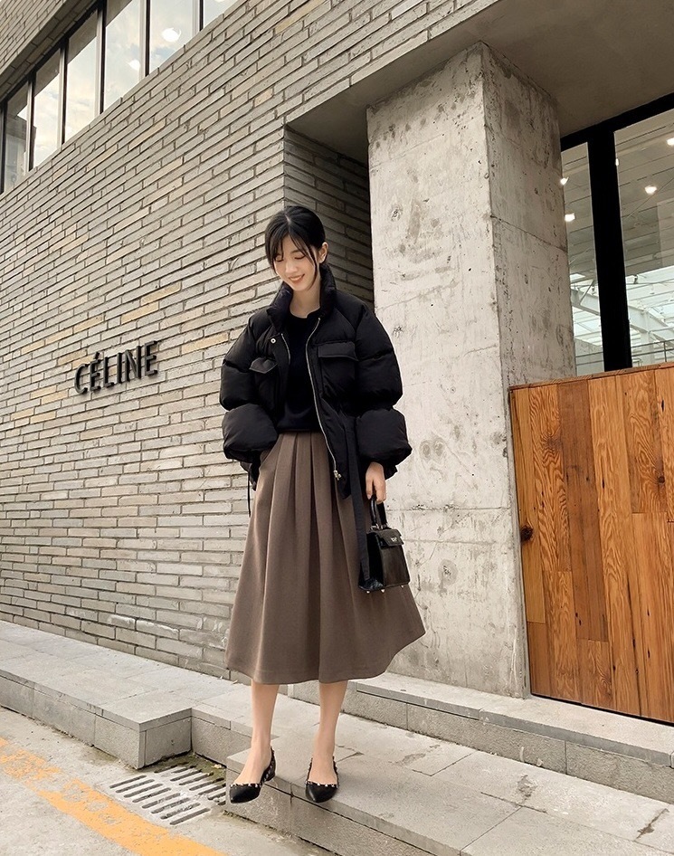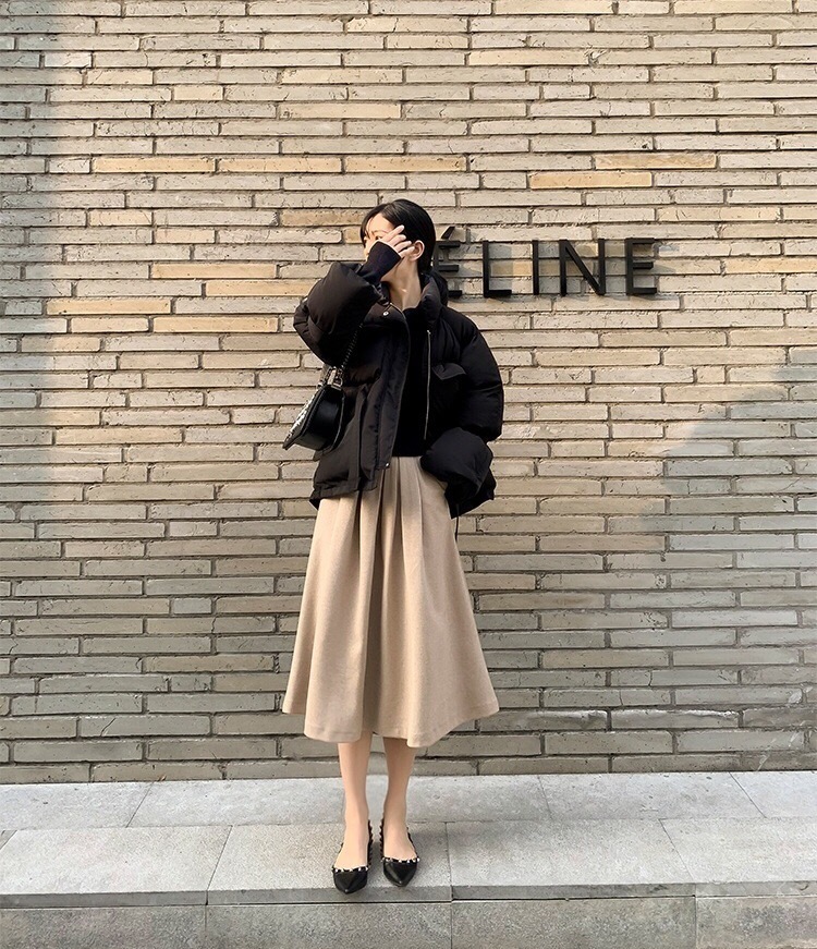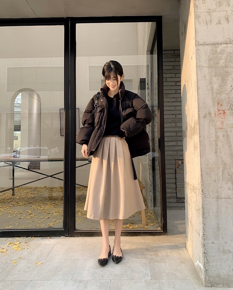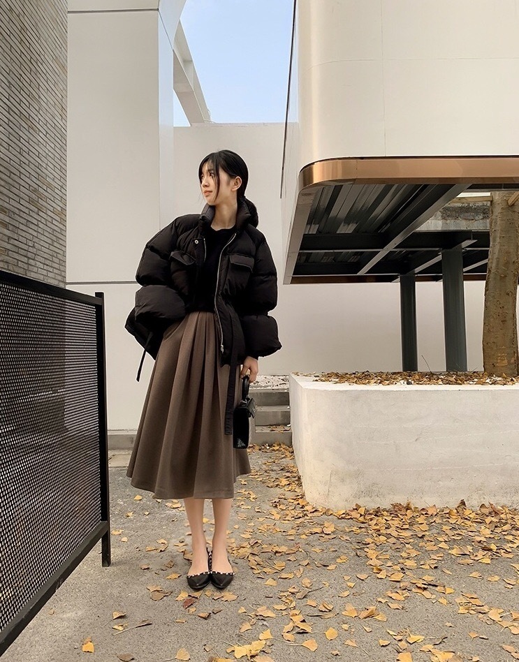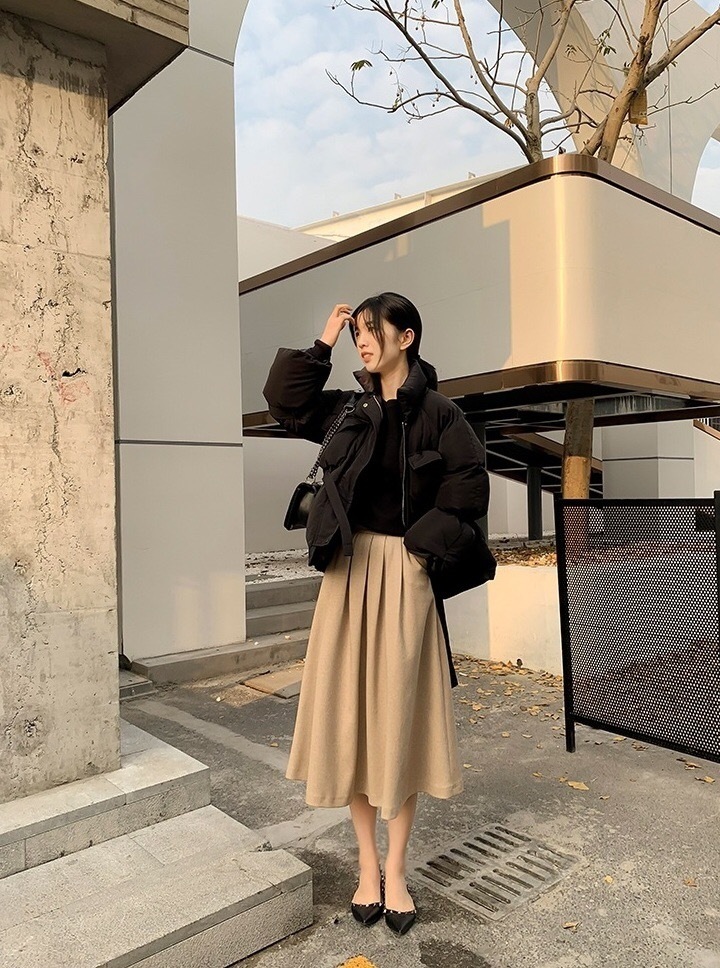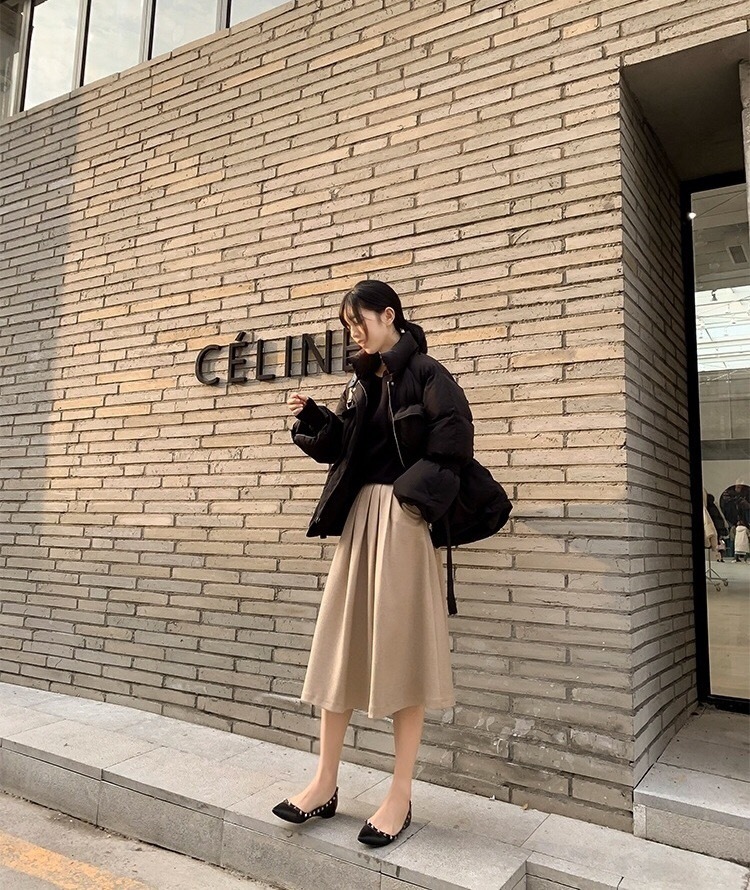 シンプルなトップスとコーディネートすると、清楚でオシャレなコーデに仕上がります。