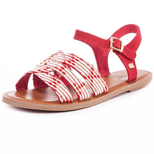 Upper comes in a variety of materials. Material is stated in the color name. Inspired by water sandals. Ankle strap with adjustable metal buckle. Cushioned leather footbed provides light cushioning. Flexible, one-piece, mixed-rubber outsole. Imported.