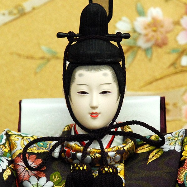 ・台座・屏風等には落ち着いた色目の雛人形セット。