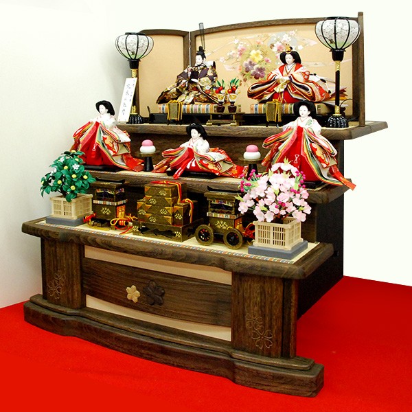 ・和洋室に合う高級自然木使用の台座の雛人形飾り
