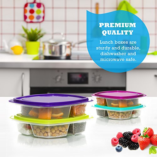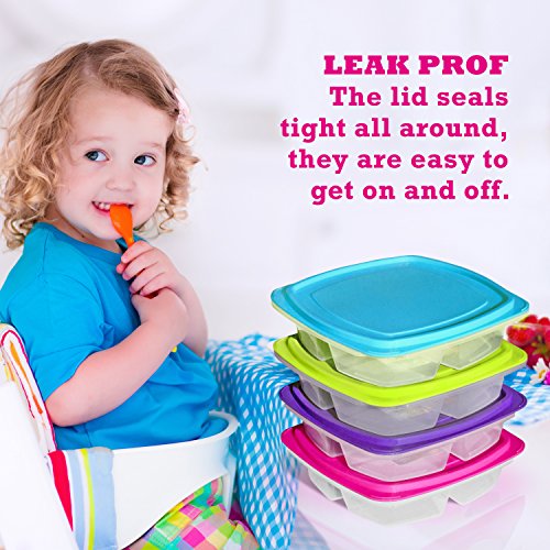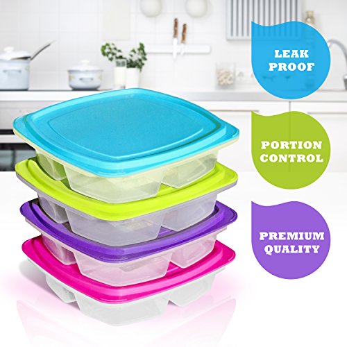 EASY PORTION CONTROL. Pack just the right amount of food in each compartment without having to weigh or measure. Easy to separate foods! Clear bottoms let you see through without having to open the lid.