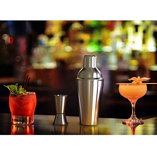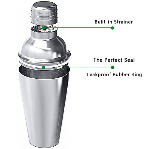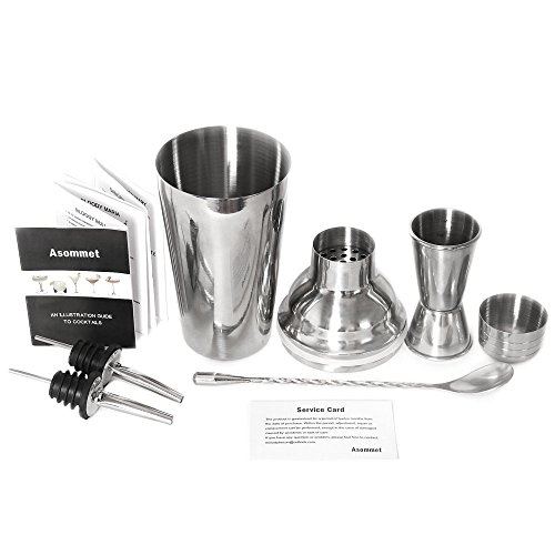 Product Description Are You Ready To Become A Skillful Bartender? Asommet presents you with the cocktail shaker set, a professional bartender kit that will allow you to make delicious cocktails! The set includes all of the tools you need to make a cocktail: · 1x 21ounce cocktail shaker · 1x stirring spoon · 1x double jigger with measuring markings · 2x wine pourers · 1x 26 recipe booklet E-book ( 1000 Best Bartender's Recipe; The American Cocktail )