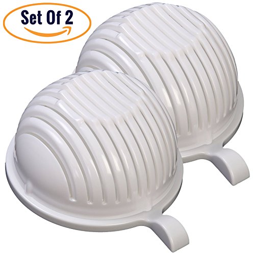 LARGE DOUBLE PACK X2 WHITE/GREEN Salad Cutter Bowl - Cut Your Fruit & Vegetables in 60 Seconds with this Fast & Easy to Use Salad Chopper (White)