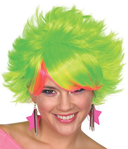-. Binding : Apparel -. Brand : Rubie's -. Department : womens -. Feature : Synthetic fiber costume wig / Add character to everyday with a costume accessory from Rubies / Easy to wear, one size fits most / Computer color settings may result in product colors received appearing different that shown / Witches to wenches to vampires to vagrants, from Graceland to galaxies far, far away, Rubies is sure to offer the seasonal items to inspire and entertain any time of year -. Genre : Wigs and Facial Hair -. IsAdultProduct : 0 -. Label : Rubies Costumes - Apparel -. Manufacturer : Rubies Costumes - Apparel -. ProductGroup : Apparel -. ProductTypeName : ADULT_COSTUME -. Publisher : Rubies Costumes - Apparel -. Studio : Rubies Costumes - Apparel -. Title : Rubie's Costume Women's 80's Pop Adult Lime Wig