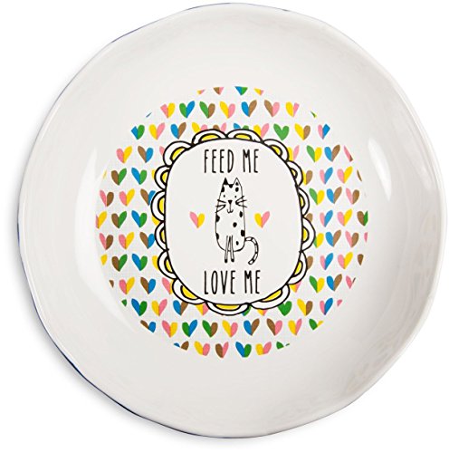 Pavilion Gift Company It's Cats & Dogs-"Feed Me Love Me" Shallow 2" Tall Ceramic Cat Food and Water Dish, Navy Blue