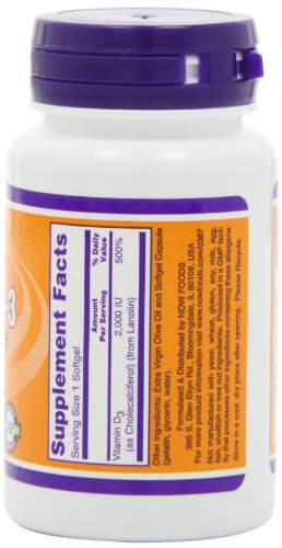 -. Binding : Health and Beauty -. Brand : Now Foods -. Department : Health and Beauty>Health and Wellness -. EAN : 0733739003676 -. Feature : High Potency - Structural Support / Helps Maintain Strong Bones / Supports Dental Health* -. IsAdultProduct : 0 -. IsAutographed : 0 -. IsMemorabilia : 0 -. Label : NOW Foods -. LegalDisclaimer : * These statements have not been evaluated by the Food and Drug Administration. This product is not intended to diagnose, treat, cure or prevent any disease. **Always refer to the manufacturer's label on the product for description, recommended dose and precautions. -. Manufacturer : NOW Foods -. Model : 0367 -. MPN : 367 -. NumberOfItems : 1 -. PackageQuantity : 1 -. PartNumber : 367 -. ProductGroup : Health and Beauty -. ProductTypeName : HEALTH_PERSONAL_CARE -. Publisher : NOW Foods -. Size : 120 -. Studio : NOW Foods -. Title : NOW Foods Vitamin D-3, 2,000 IU, 120 Softgels -. UPC : 733739003676