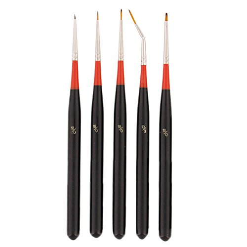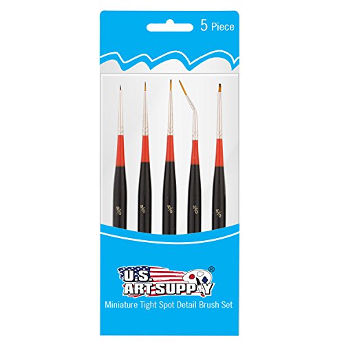 US Art Supply 5 Piece Miniature Tight Spot Micro Fine Detail Art & Beauty Taklon Brush Set with Wood Handles