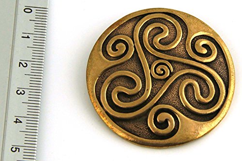 -. Feature : Bronze pendant necklace with Celtic Knot Triskelion Engraved Design, gold tone colored. / Extensible slide knot genuine leather cord length 18 - 32 inches in black color. / Good quality Bronze. Lead, cadmium and nickel free. / Approx. 4.50 cm (1.77 Inch) in Diameter / Imported, Thailand origin. Free Shipping !