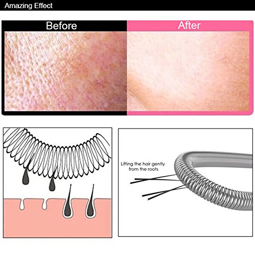 REMOVES HAIR From Roots and reveals your flawless skin. The epilator is effective in removing most hairs. As you hold both ends of the spring epilator and twist it, the facial hairs and especially those stubborn ones get caught into the coil and are gently removed from the root. This leaves you with a smooth facial skin for at least two weeks.