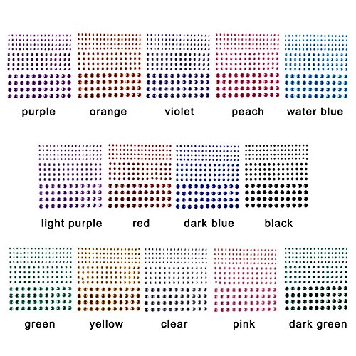 D-buy 2408 Pcs, 14 Colors, 3 Sizes, Multicolor Self-Adhesive Rhinestone Sticker Sheet, 14 Sheets, for DIY Craft Scrap Book Children Picture Frames, etc.