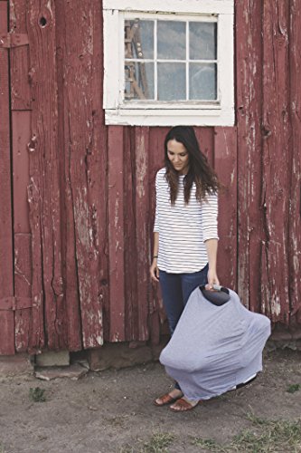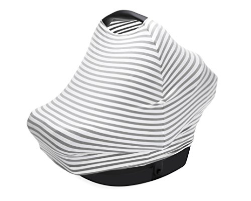 The Good Baby 4 in 1 Car Seat Cover for Girls and Boys - Stretchy Carseat Canopy, Nursing Cover, Grocery Cart Cover, Infinity Scarf - Grey/White Stripes