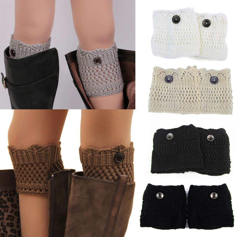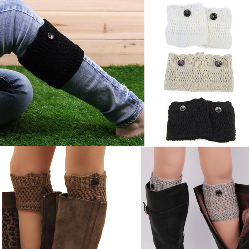 Hot Women Ladies Winter Leg Warmers Button Warm Crochet Knit Boot Socks Toppers Cuffs