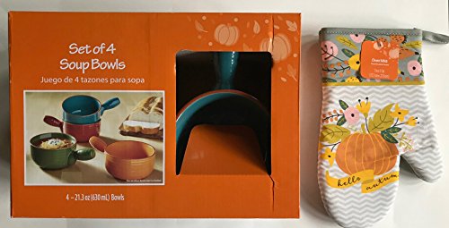 Soup Crocks Bowls Set of 4 21 oz soup bowls With Oven Mitt Bundle