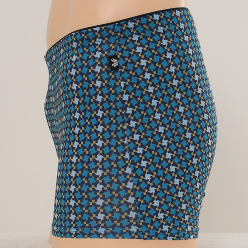바람개비 나염이 돋보이는 폴리스판 소재로 신축성이 좋 으며 면 내측밴드를 사용하여 허리에 밴드자국이 남지 않아 편하게 착용 가능한 드로즈 제품.