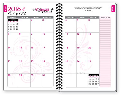 -. Binding : Office Product -. Brand : Images of Grace Christian Daily Planners -. Color : Pink -. Feature : 2016-17 Academic Calendar Daily Weekly Monthly Calendar Planner. 136 Pages! Scriptures psalms included throughout publication. Bright, high quality writing paper. / 12 month Bible reading plan included. High Quality paper. No ink bleed. / As a Daily Planner, it offers Plenty of space for your agenda items & notes. / Pockets on both inside covers. 2016 to 2017 planner. Academic year planner. -. Label : Images of Grace Christian Daily Weekly Monthly Planners -. Manufacturer : Images of Grace Christian Daily Weekly Monthly Planners -. Model : BC-11692 -. MPN : PinkFish -. PackageQuantity : 1 -. PartNumber : PinkFish -. ProductGroup : Office Product -. ProductTypeName : OFFICE_PRODUCTS -. Publisher : Images of Grace Christian Daily Weekly Monthly Planners -. Studio : Images of Grace Christian Daily Weekly Monthly Planners -. Title : 2016-17 Pink Inspirational Christian Daily Planner August Through July Day Planners Weekly Monthly Organizer Agenda, 6 x 9
